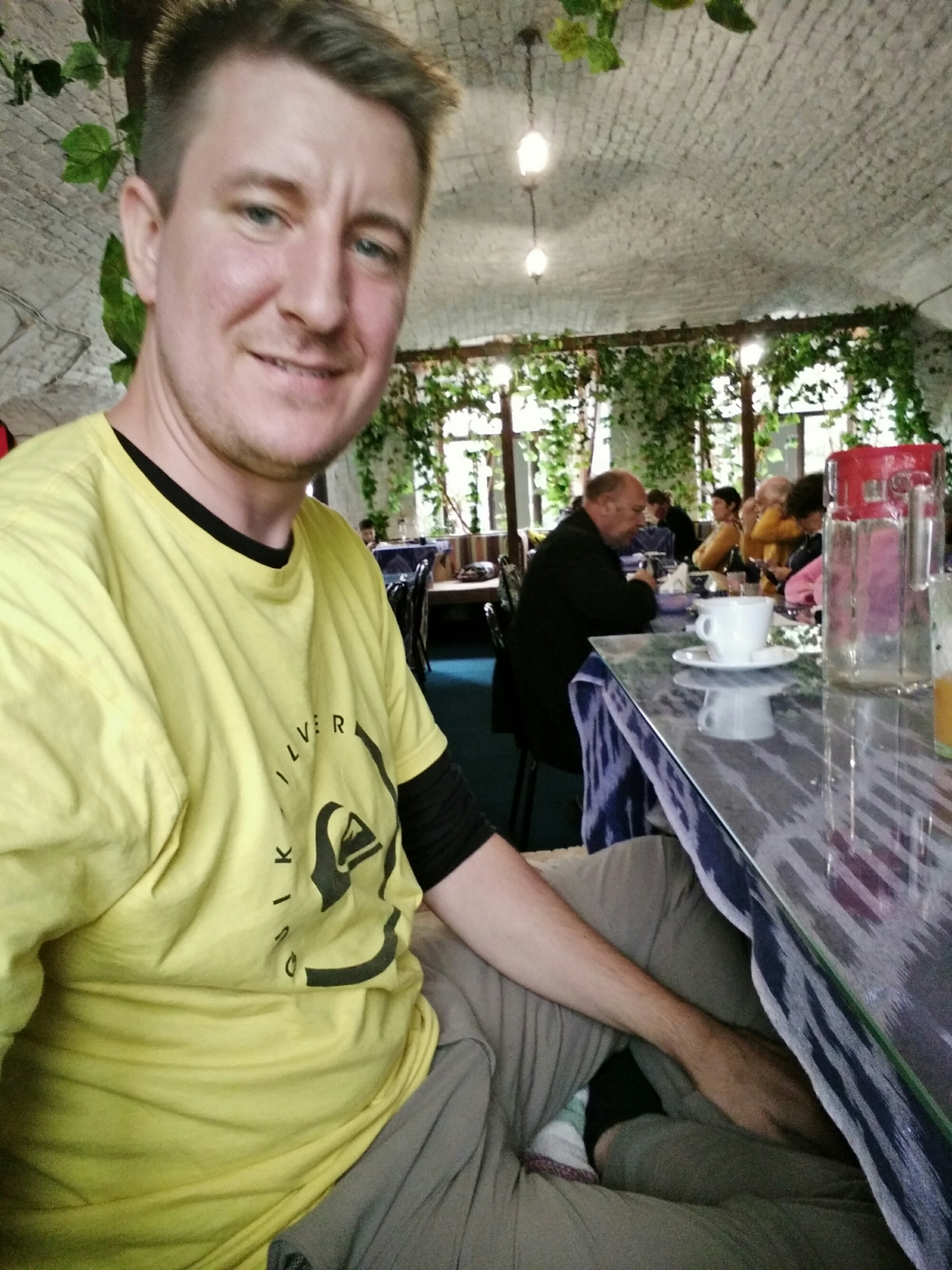 Für unter 10 Euro wird man hier zu zweit ganz gut satt. Außerdem kann man mehr (ich) oder weniger (Arne) entspannt auf dem erhöhten Boden sitzen, auf einer Höhe mit den Tischbeinen:
