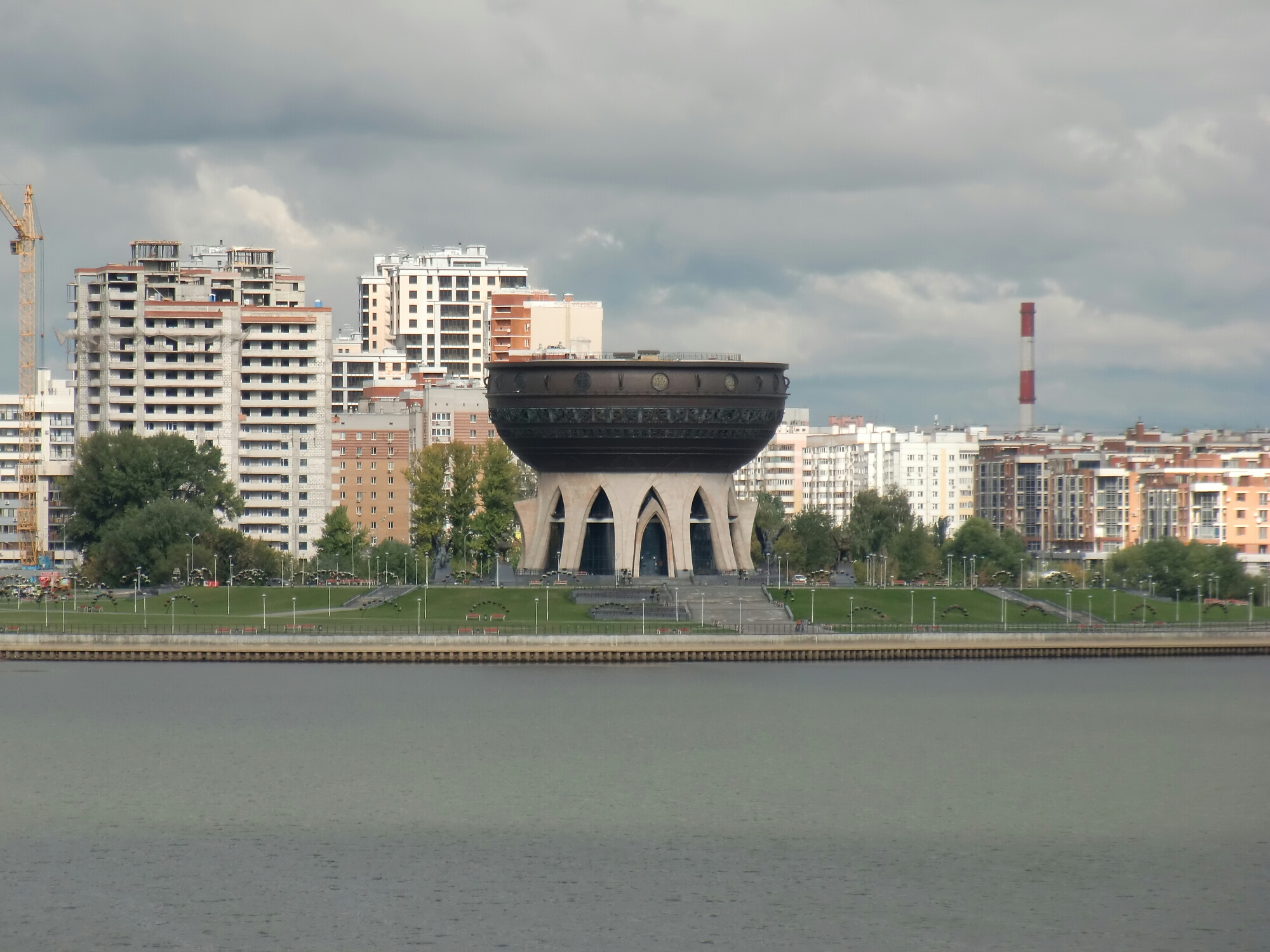 Direkt am Kazanka steht diese riesige Schüssel, in der die Sowjetunion 1989 die weltgrößte Portion Borschtsch kochen wollte. Dazu wurden über 80 Prozent der gesamten Rote-Beete-Produktion des Landes herangezogen. Der verantwortliche Chefkoch hatte sich jedoch bei der notwendigen Wärmemenge verkalkuliert, so dass die rote Suppe verkochte. Infolgedessen kam es zu einer Mangelernährung in der UdSSR (Rote Beete enthält bekanntlich viel Vitamin C), die Produktion ging in fast allen Industrie- und Agrarbetrieben zurück, und die Union zerbrach schließlich daran.