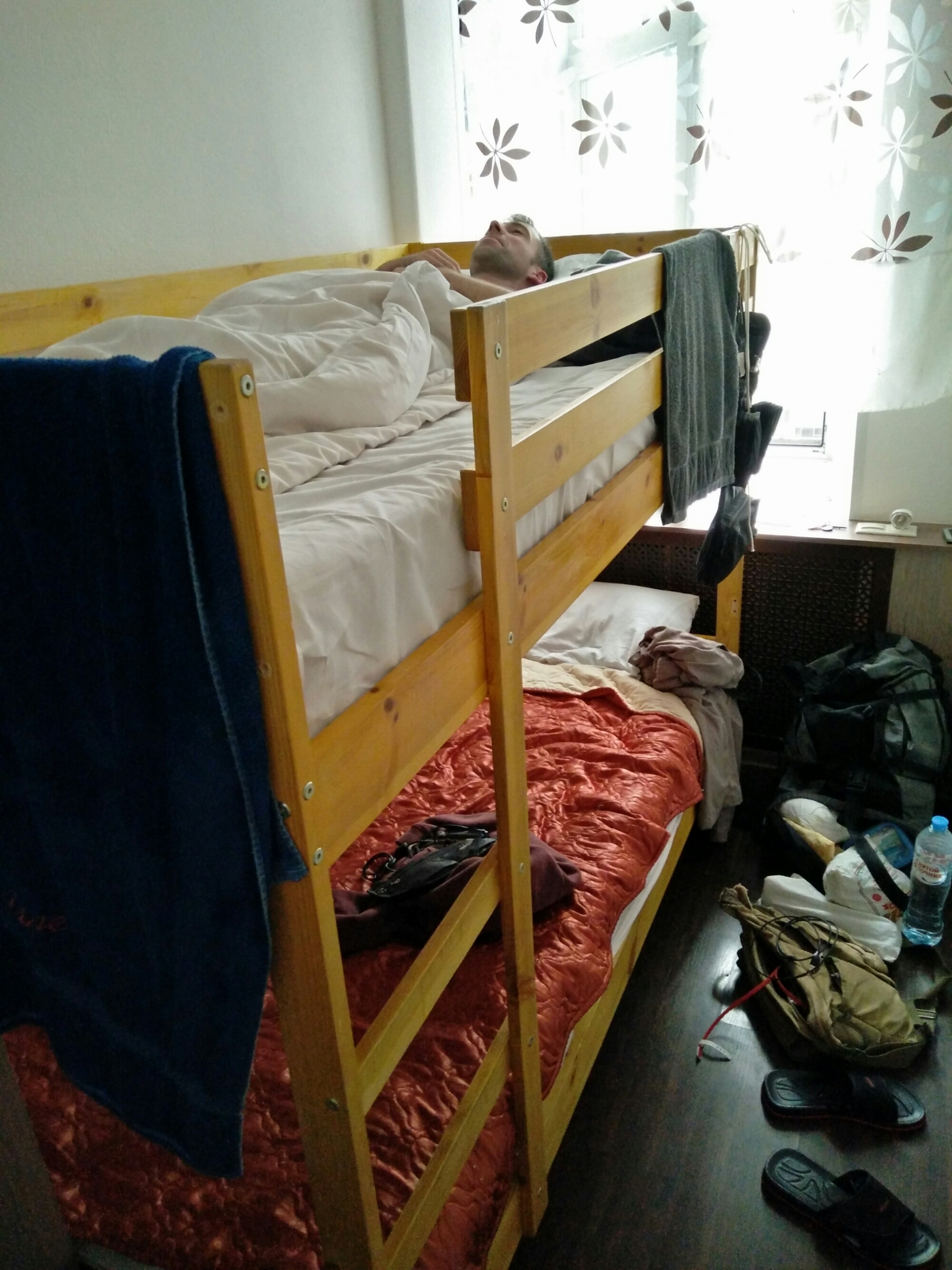 Nach über 10 Stunden Erkundung der Stadt konnten wir jetzt unser Zimmer beziehen. Seht am besten selbst, wie eng gemütlich unser Zimmer ist: