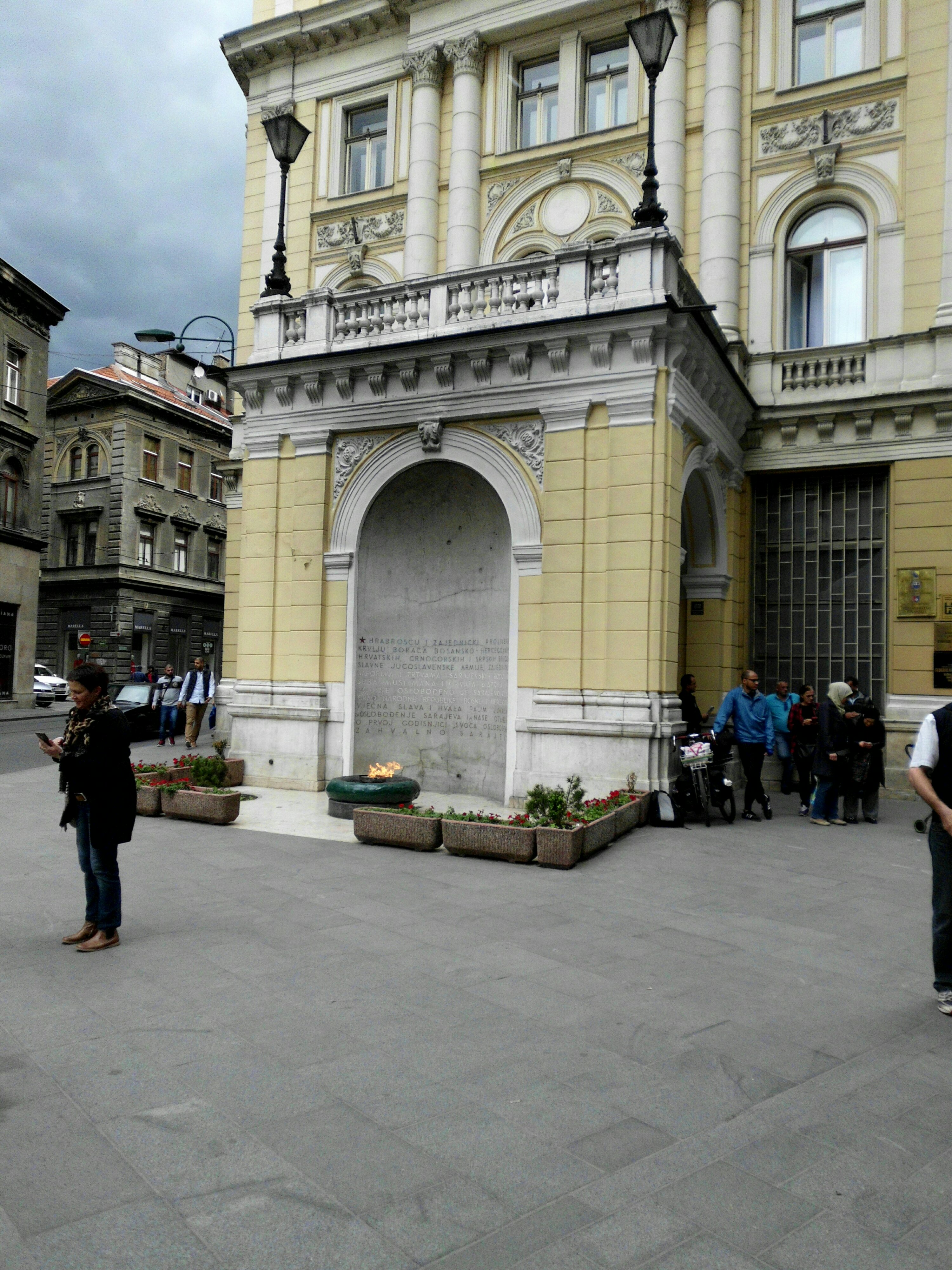 Zum Abschluss noch eine kleine Geschichtsstunde. In Sarajevo wurde 1914 Erzherzog Franz-Ferdinand erschossen, was zum Ausbruch des ersten Weltkriegs führte. Dies geschah auf der im heutigen Titelbild sichtbaren Brücke. Der Anschaulichkeit halber haben wir dieses geschichtsträchtige Ereignis nachgestellt: