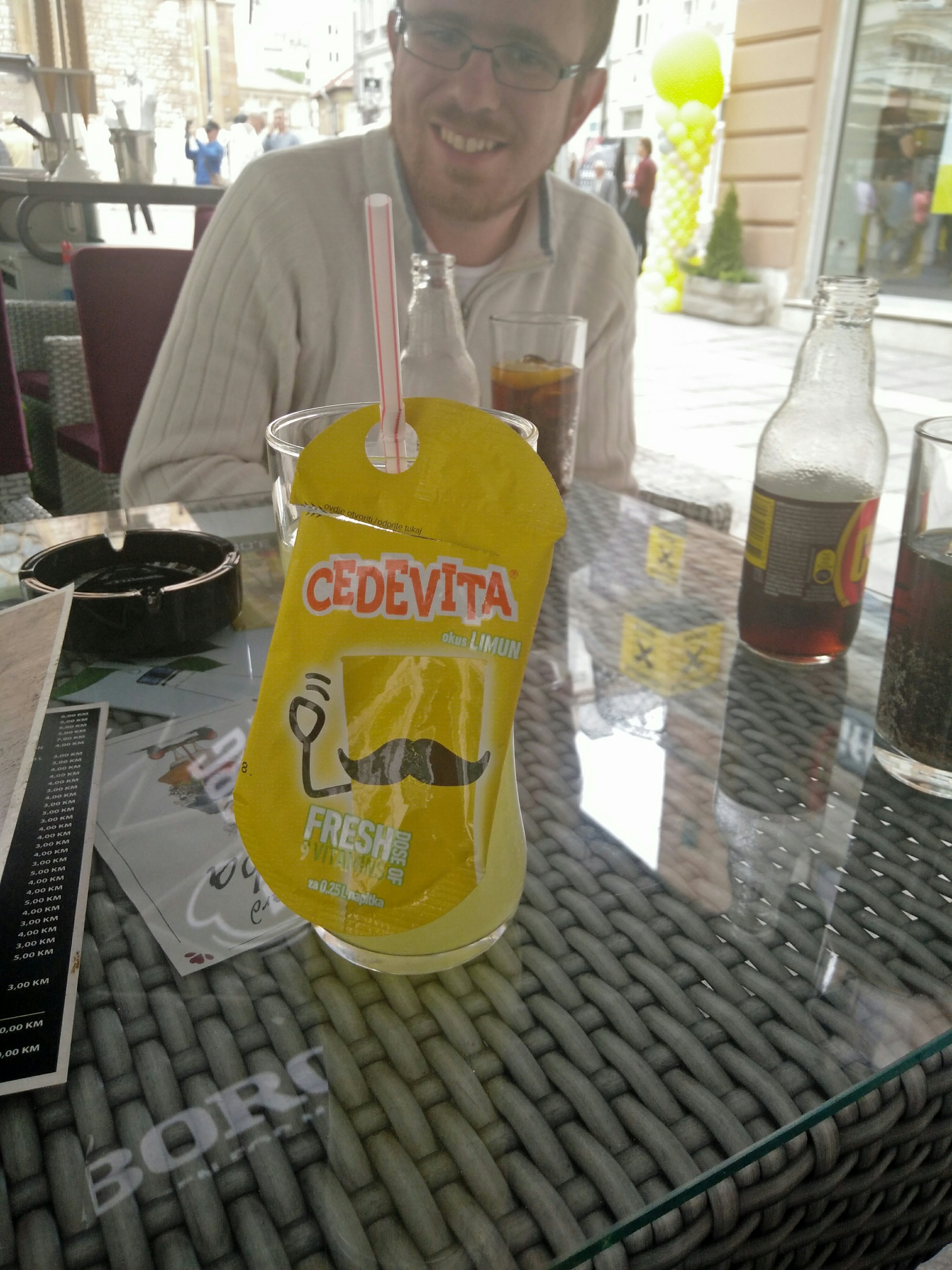 Skurrilität des Tages: im Café probierten Malte und Arne die lokale Cola-Variante (eher unspektakulär), ich bestellte irgendwas mit Limun von der Karte. Der Kellner schaute mich etwas irritiert an, ich bekam dann dies: