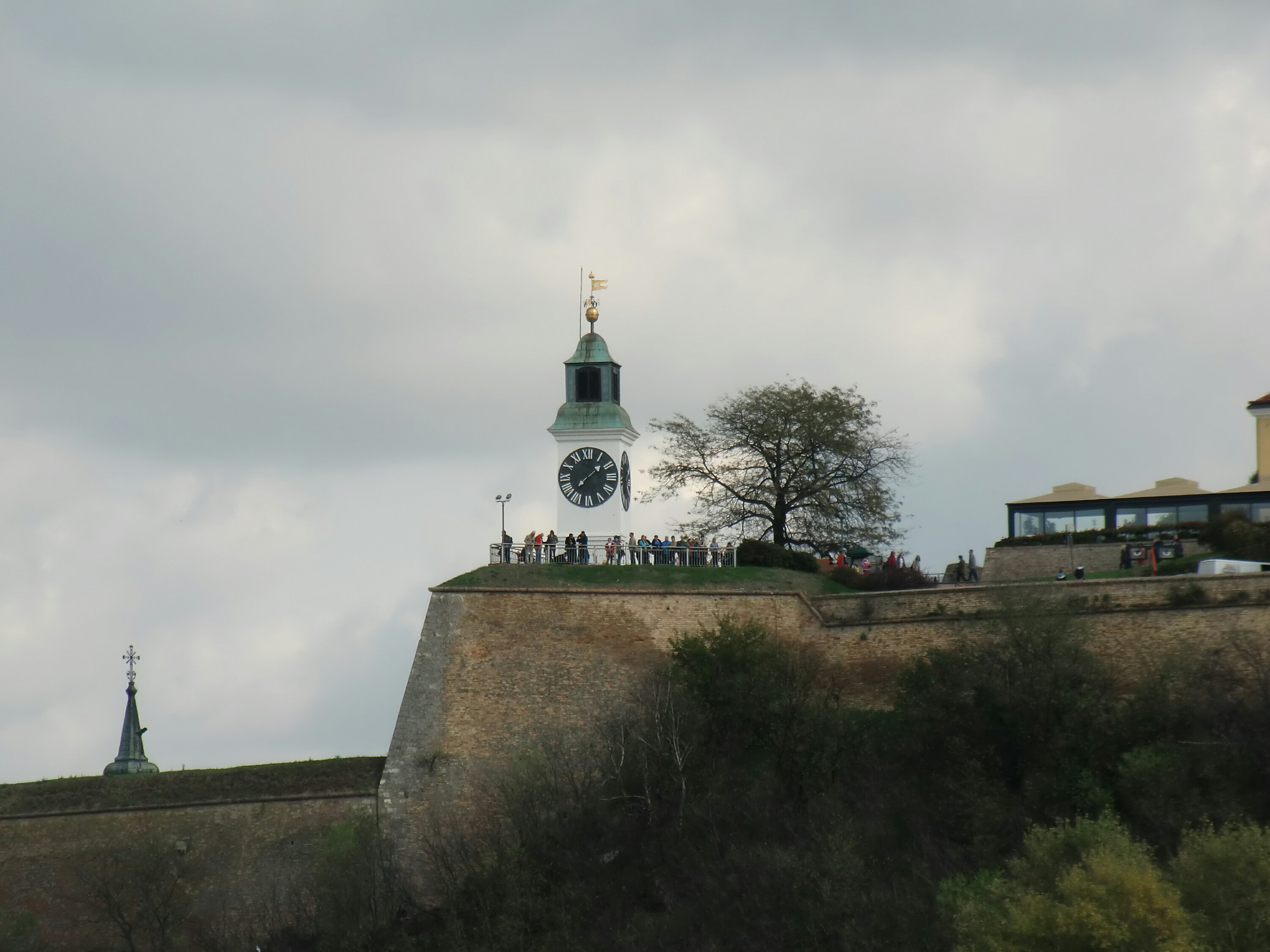 Wer gut aufgepasst hat wird bemerken dass hier was nicht ganz stimmen kann. Die Uhr zeigt zehn nach acht, ich bin aber erst gegen 10 Uhr in Novi Sad angekommen. Bei dieser Uhr haben die Serben Stunden- und Minutenzeiger vertauscht, das heißt der lange Zeiger zeigt hier die Stunde an. Die offizielle Begründung ist die, dass die Donaufischer somit leichter vom Fluss aus die Zeit ablesen können. Ich bin mir aber einigermaßen sicher, dass der Uhrmacher damals hier seine Liebe zum Rakija (dem lokalen Schnaps) entdeckt hat, und das Debakel erst am nächsten Tag bemerkte. In seinem verkaterten Kopf ist ihm dann vermutlich nichts blöderes als die Sache mit den Fischern eingefallen…