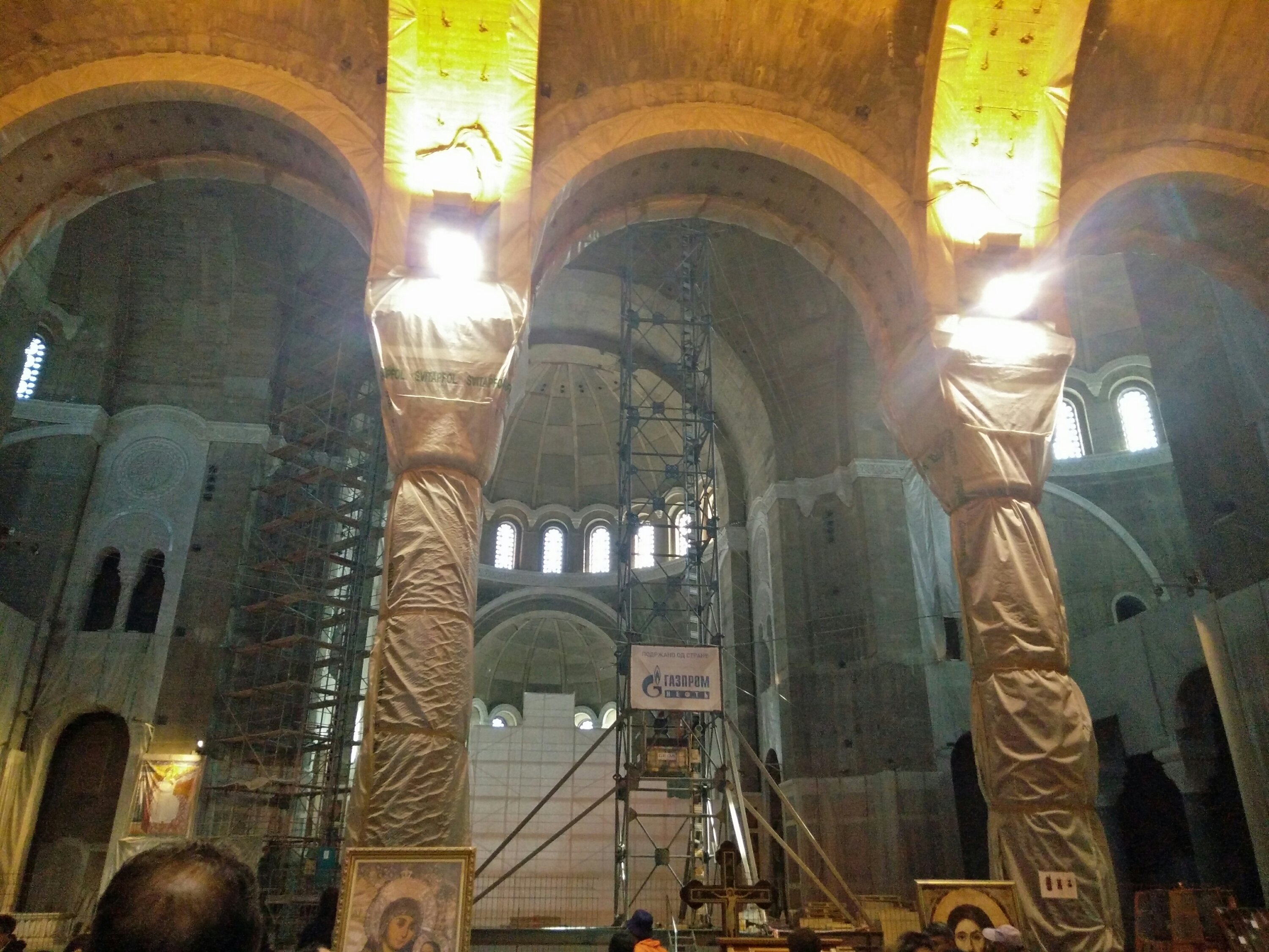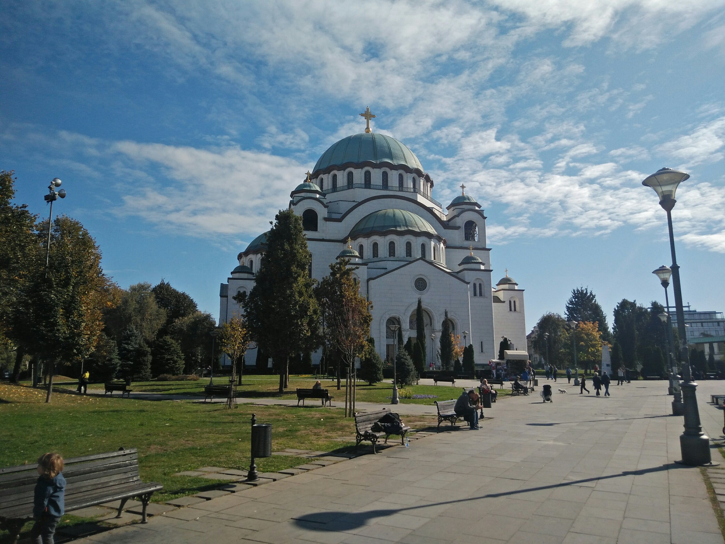 Apropos verschlafen: Ich hatte großes Glück dass die Endstation des Zuges Belgrad war, sonst wäre ich wohl sonstwo gelandet… Ich wachte irgendwann durch ein Klopfen am Fenster auf, wo der Schaffner mir signalisierte ich sollte doch endlich aussteigen. Alle Türen (natürlich bis auf die am weitesten entfernte) war natürlich schon abgeschlossen. Das hätte ganz gut nach hinten losgehen können. Wenig hilfreich war auch, dass es in Belgrad zwei Bahnhöfe zu geben scheint, die mehr oder minder offiziell als „Belgrade Central“ bezeichnet werden. In meinem verschlafenen Kopf dachte ich aufgrund der unbekannten Umgebund dann erstmal ich wäre doch schon irgendwo im Depot gelandet, zumal sich der Bahnhof noch teilweise im Bau befand. Ich hab’s dann aber geschafft mich neu zu orientieren, und das Sightseeing des letzten Tages begonnen. Zunächst gab es eine große Kirche zu bestaunen: