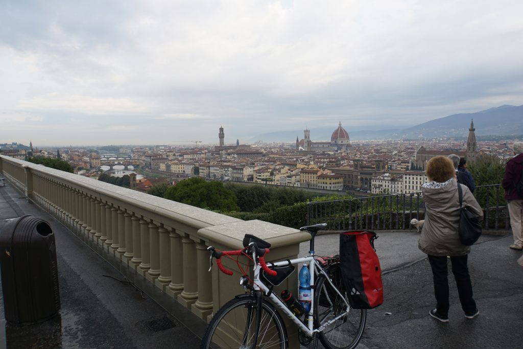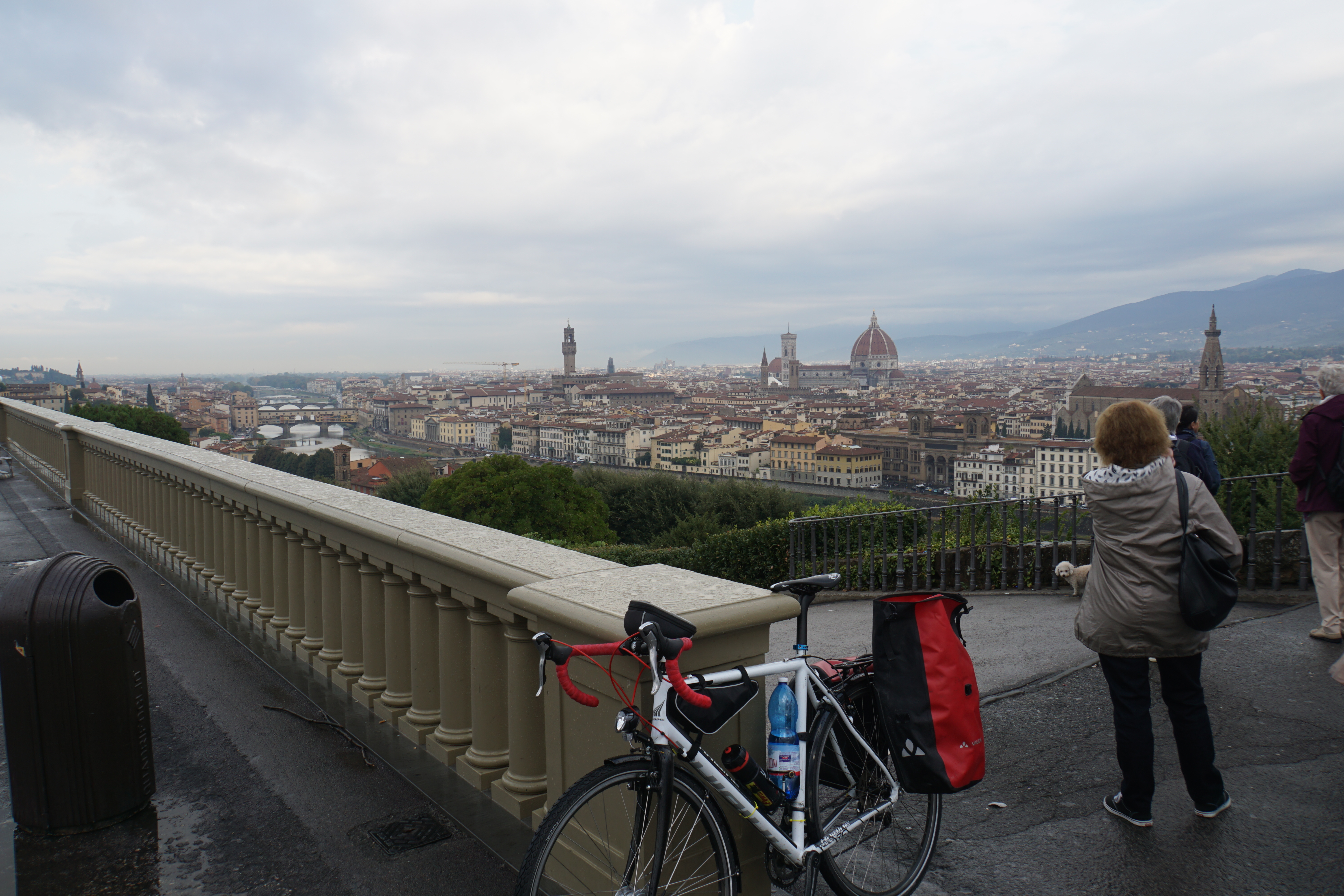 Viertel vor neun hatte es sich dann soweit beruhigt, dass ich zumindest abfahren konnte. Beim Piazzale Michelangelo legte ich noch eine kurze Fotopause ein, um mich vorerst von Florenz zu verabschienden.