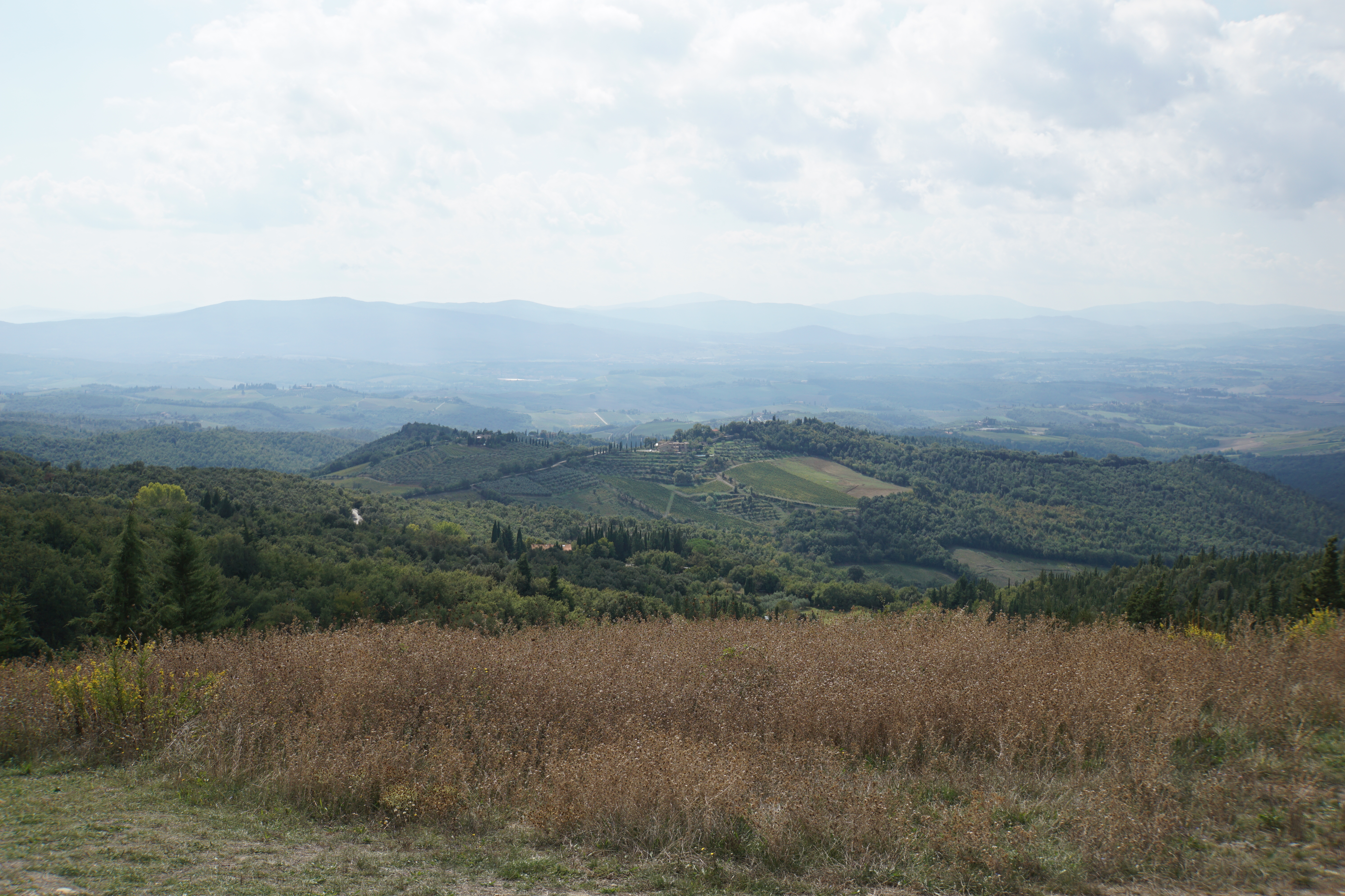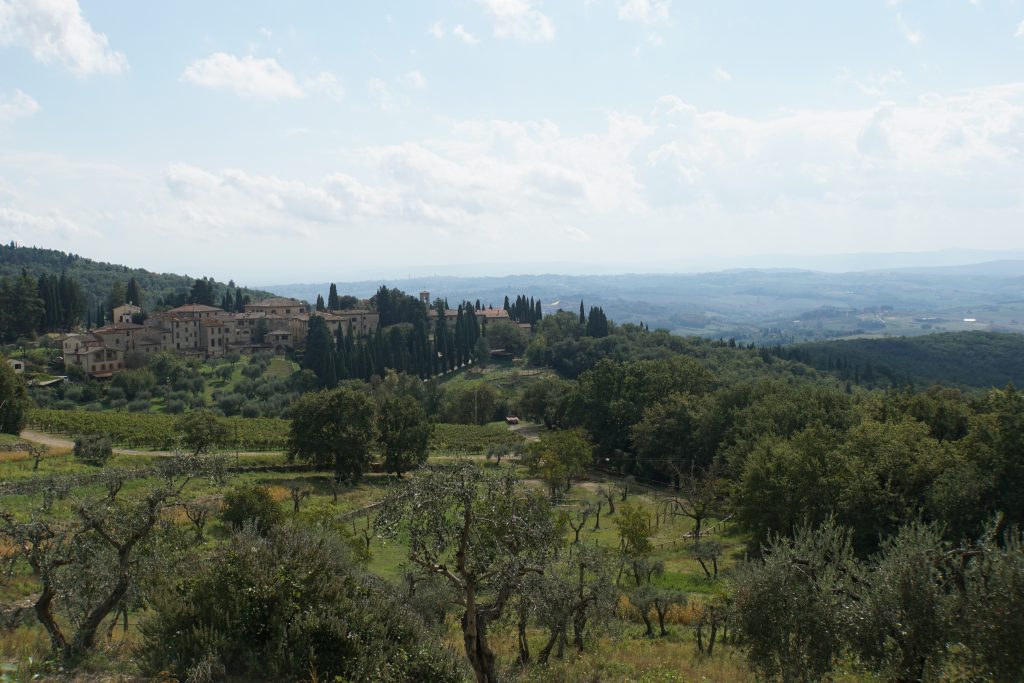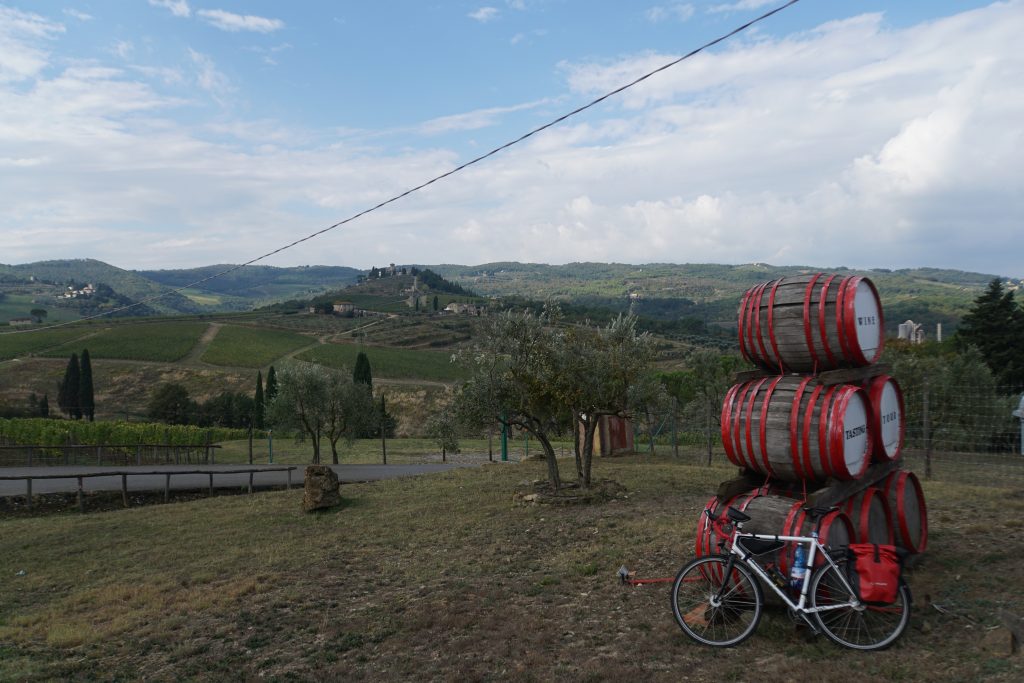 Bis hierhin war ich nach nach vorher heruntergeladenen GPS-Daten gefahren, und war einigermaßen überrascht, dass ich bisher ausschließlich auf Straßen unterwegs war. Die Fahrradkultur in Italien beschränkt sich praktisch ausschließlich auf Rennräder – In Florenz war ich vielleicht ein paar hundert Meter auf Radwegen unterwegs, die dann aber schonmal im Nichts enden und daher nicht gerade für’s Vorankommen förderlich waren. Ich ging daher davon aus dass meine GPS-Daten auch von einem Rennradfahrer waren, und testete daher die von Maps.me (auf OSM-Basis) berechnete Fahrrad-Route von Greve in Chianti aus. Das hätte ich nicht unbedingt machen sollen – ziemlich direkt führte mich die App eine fiese Steigung hoch. 300 Höhenmeter auf 3 Kilometer – 10% Steigung über eine solche Strecke mit Gepäck waren schon nicht sonderlich angenehm muss ich zugeben, und an den steileren Stellen musste ich, auch wenn ich es ungern zugebe, sogar teilweise schieben…