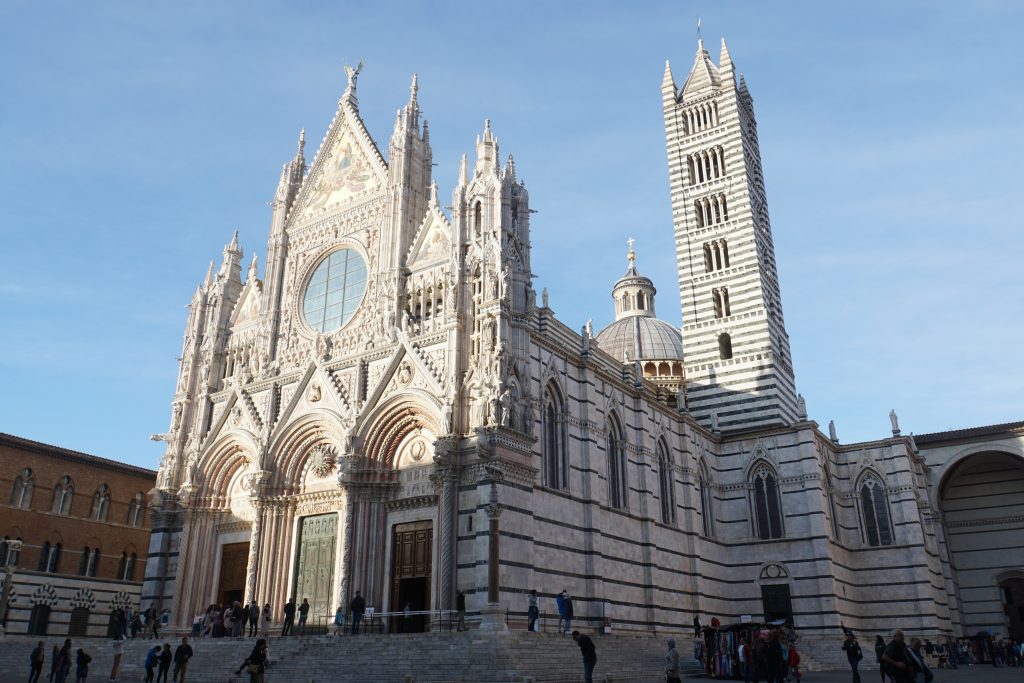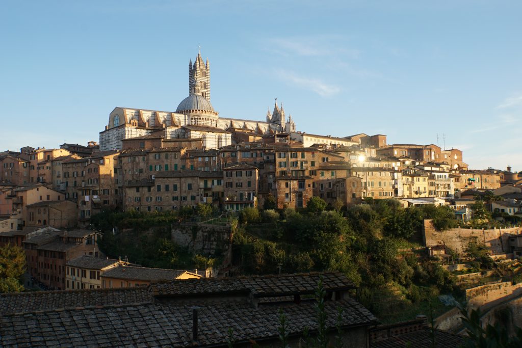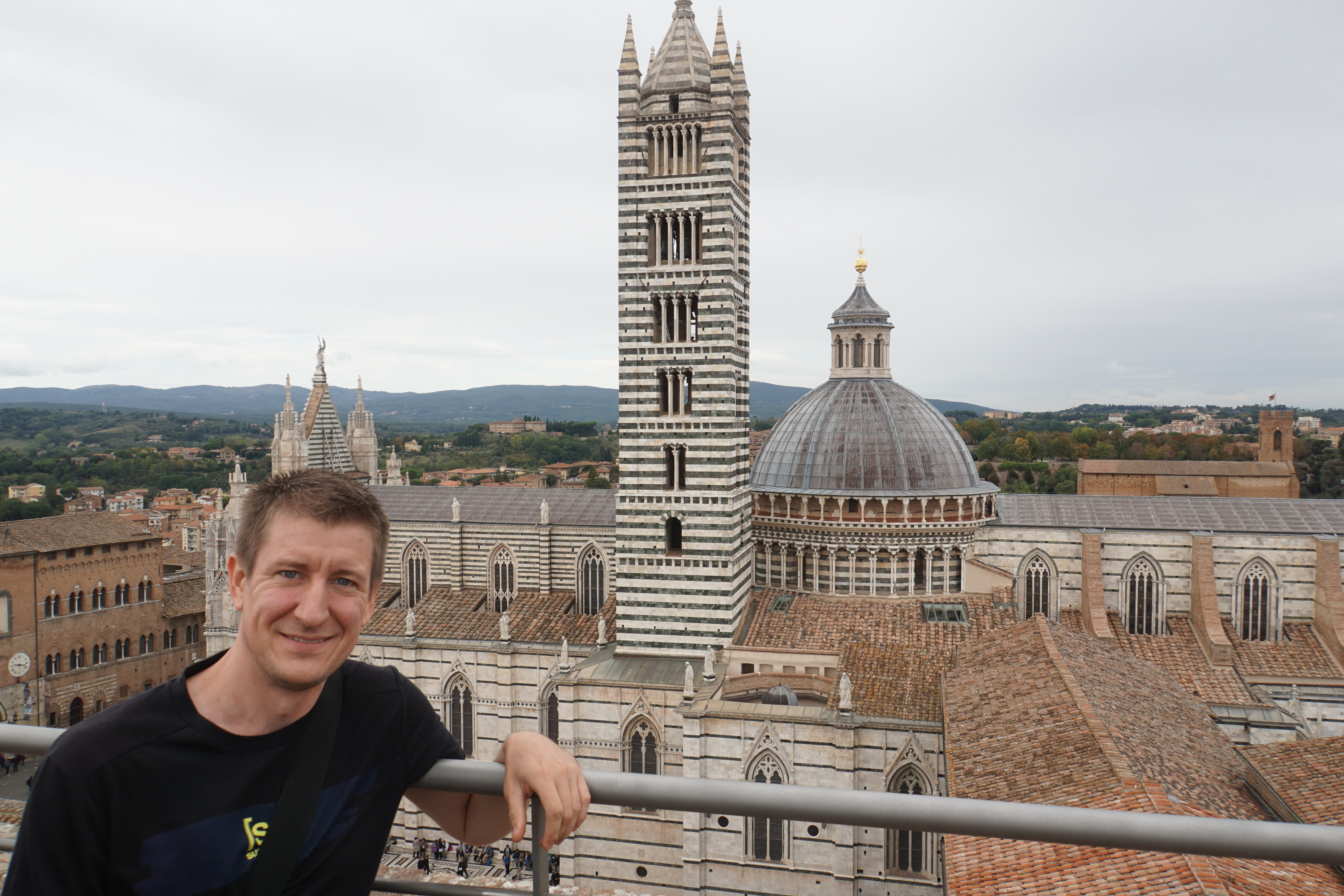 Diesmal war ich etwas klüger und hatte immerhin am Vorabend eine Übernachtungsmöglichkeit organisiert. In Siena blieb ich dann auch zwei Nächte, um mir die Stadt diesmal zumindest anschauen zu können. Am ersten Abend stand aber, der Fahrradtour entsprechend, erstmal nur Essen auf dem Programm – mit schöner Aussicht auf den Dom!