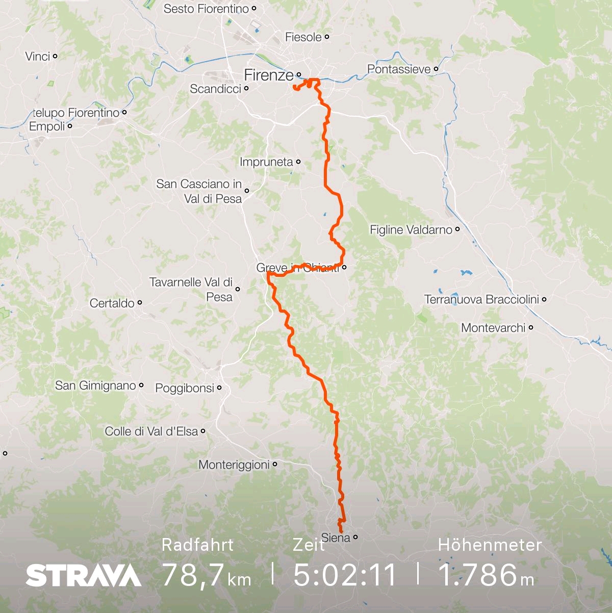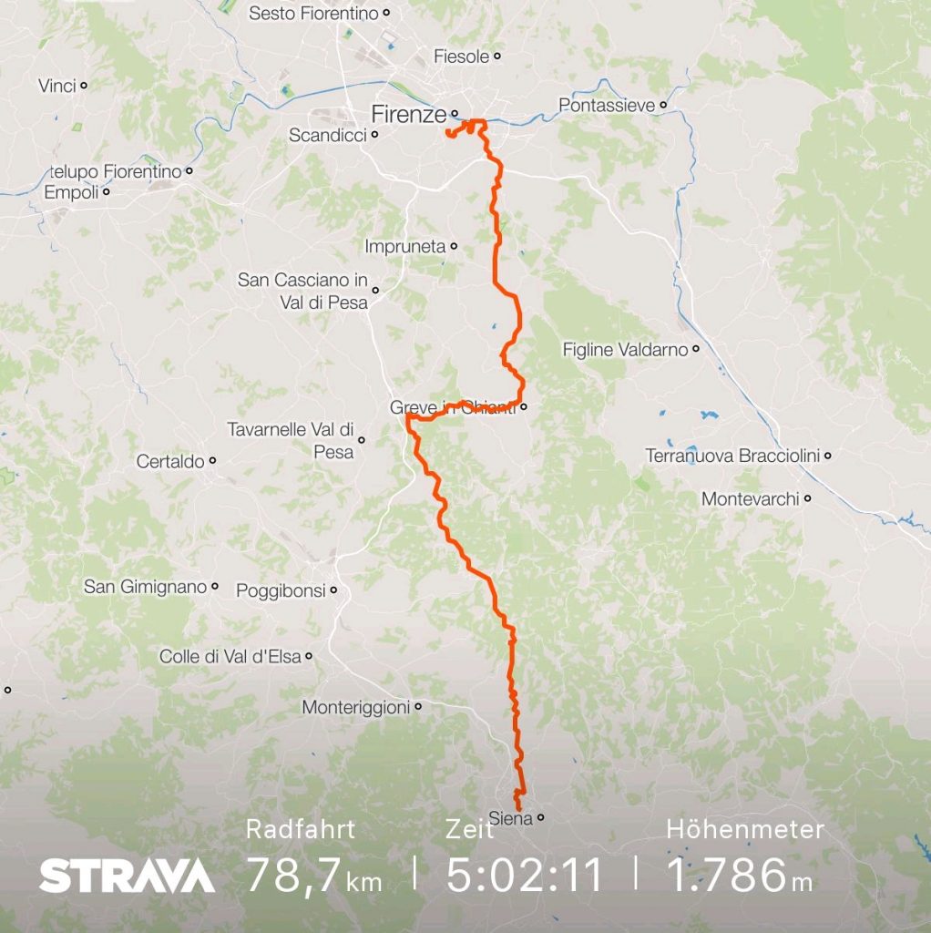 Wer ganz genau hinschaut, erkennt eventuell den aus meiner Sicht im Nachhinein etwas unnötigen Schlenker in Greve in Chianti… Egal, ich war angekommen in