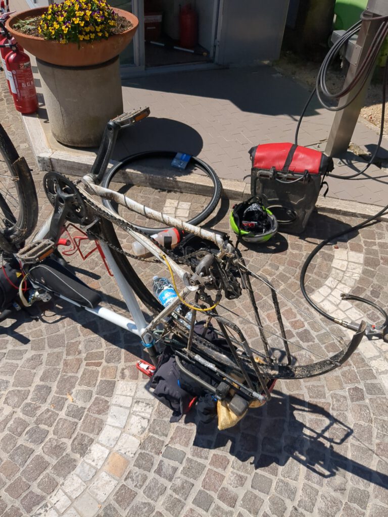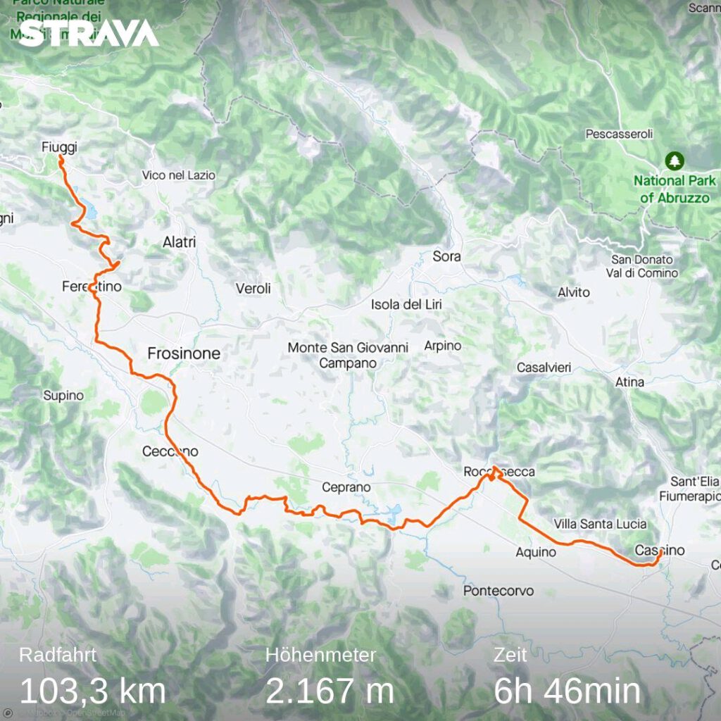 Auf der Fahrt nach Cassino am Vortag hatte ich bemerkt, dass mein Hinterrad sich leicht unrund anfühlte – irgendwas passte nicht. In Cassino habe ich am Abend dann einmal geschaut ob alles rund lief, und einen winzigen Höhenschlag ausgeglichen – in der Hoffnung, dass es das gewesen sein sollte.