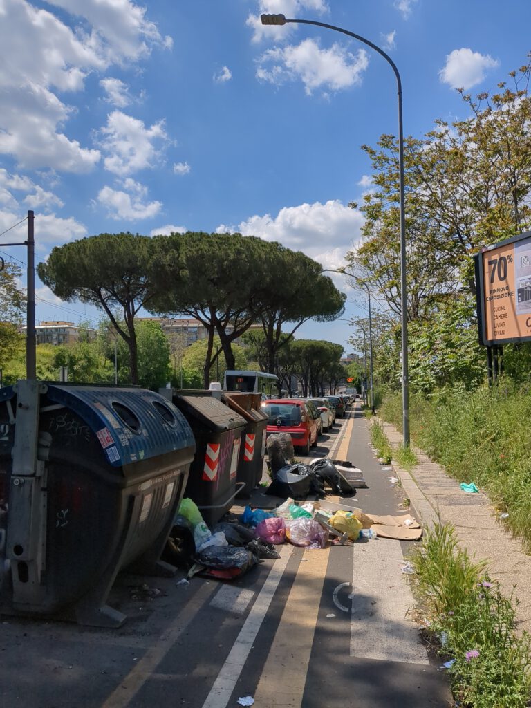 Hier musste ich mich also wieder einmal ein Stück nach unten klappern. Ziemlich kam ich dann auch in den weitreichenden Speckgürtel Roms, der jetzt nicht besonders fotogen war. Keine Überraschungen hier. Zunächst steuerte ich die östlichste Metrostation an, um zu entscheiden ob ich mir den Stadtverkehr geben möchte oder nicht (und die Möglichkeit des Umsteigens zu wahren, sollte es zu schlimm werden). Und dazu muss ich sagen: Zu empfehlen ist es wirklich nicht gerade. Zum Einen bewegen sich die Autofahrer irgendwo im Bereich zwischen „Da ist ein Radfahrer, mir egal.“ und „Da ist ein Radfahrer, bringen wir ihn um!“, zum Anderen sind die Verkehrsführungen nicht immer so eindeutig, dass man nicht versehentlich dann doch falsch abbiegt und bei der Korrektur nochmal versehentlich im Einbahnstraßenbereich landet.