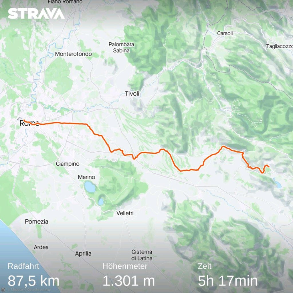 Zur Abwechslung muss der Großteil der Leser heute mal nicht auf Google Maps suchen, wo mein Ziel überhaupt liegt! Gestartet bin ich am Freitag, den 5. Mai, aber natürlich in den Hügeln südlich von Rom, in Fiuggi. Diesmal gab es sogar ein Frühstück im Hotel (erschreckend viele Deutsche), was meinen Start leicht verzögert hat. Außerdem musste natürlich das Fahrrad auch wieder nach unten transportiert werden… Und der begeisterte Hotelier vom Vorabend wollte noch die Details meiner weiteren Route wissen. Die Fahrt startete dann auch so angenehm wie nur möglich: Ein paar Höhenmeter musste ich noch klettern, dann ging es 20km nur bergab! Und das auch noch überwiegend auf einem eigenen Radweg!