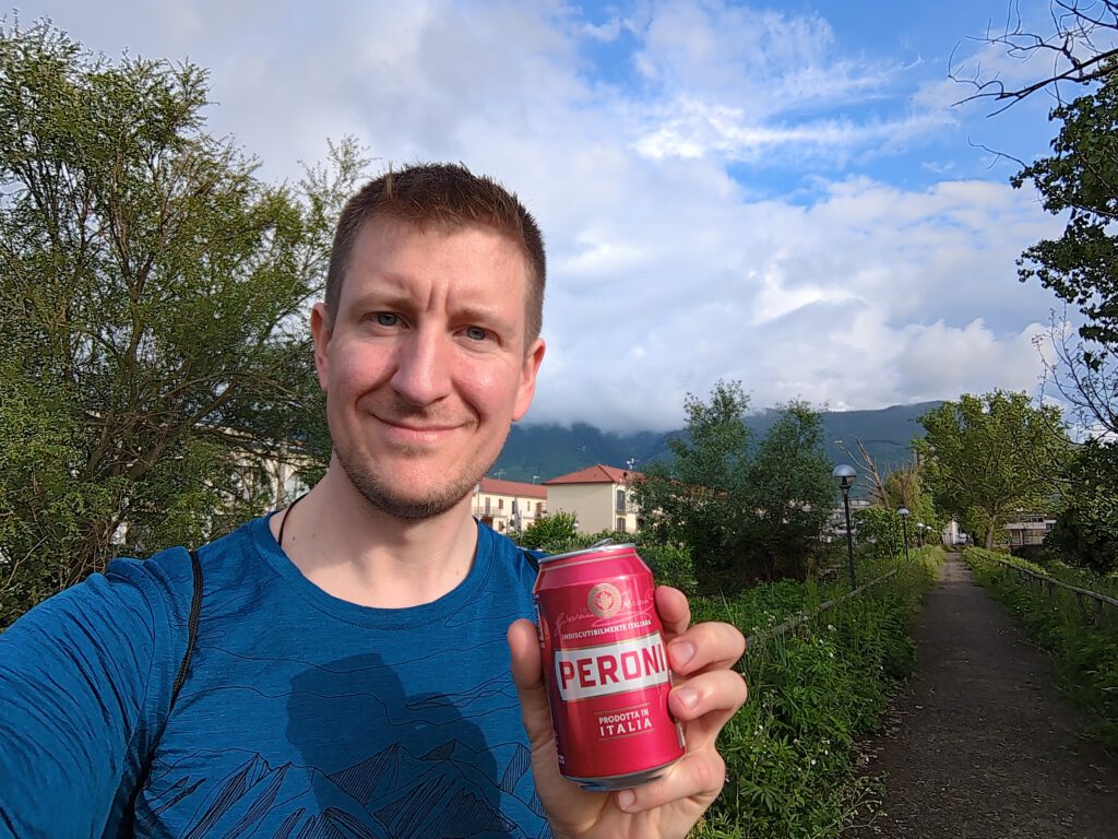 Die Tradition ist natürlich das Bierselfie an sich, nicht das Dosenbier. Die Biertradition in Italien… Im Supermarkt gab es nicht ein gekühltes Bier. Genug gesagt.