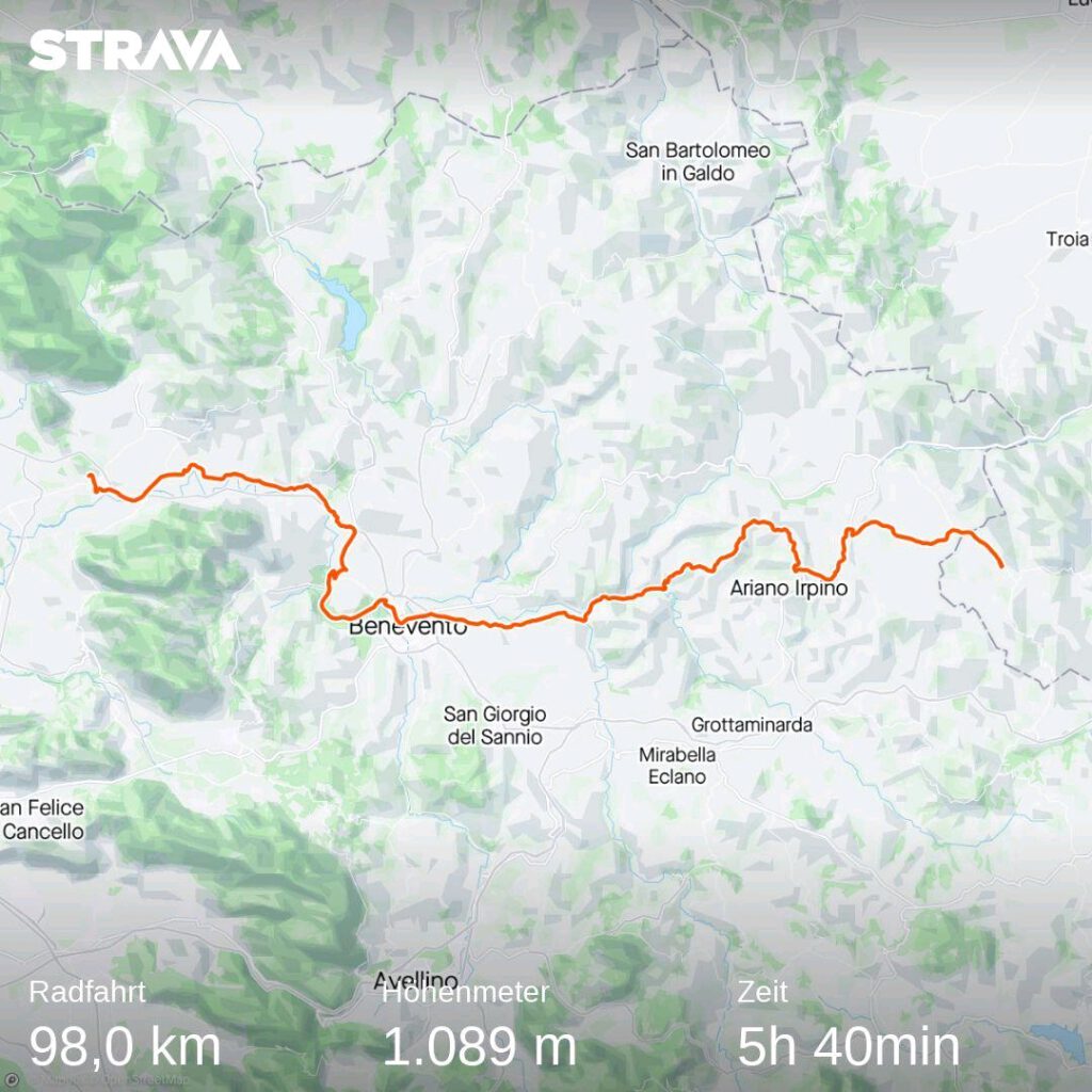 Hier war meine einzige Sorge eigentlich nur die Überhitzung der Bremsen. Danach begann es dann bald wieder zu regnen, und mein Weg führte mich durch Benevento.