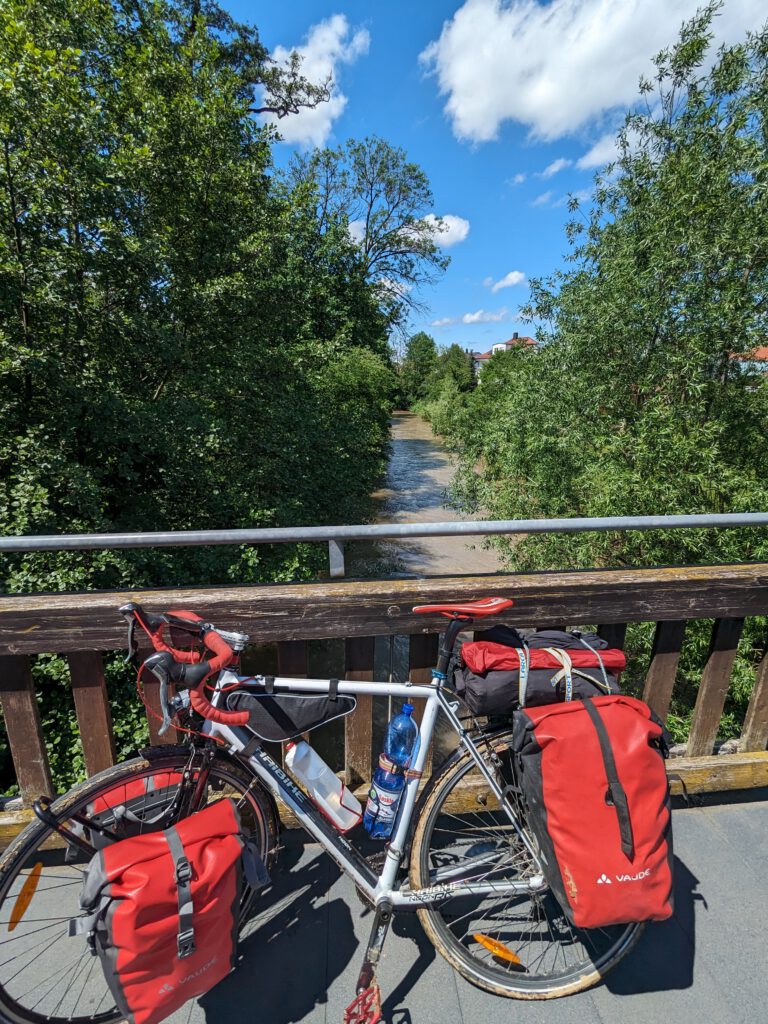 Die ersten 50km bis Göppingen waren dabei nicht unbedingt interessant – erst am Neckar bis Plochingen (im leichten Regen), dann an der Fils hoch. Die Strecke bin ich schon mehrfach gefahren, zuletzt durch Zufall vor drei Wochen. Kurz vor Göppingen radelte ich ein Stück mit einer Gruppe, die nach Prag unterwegs waren. Aufgrund der feuchten anderen Richtung trennten sich die Wege dann aber in Göppingen auch direkt. Die Fils war entsprechend der zweite Fluss des Tages: