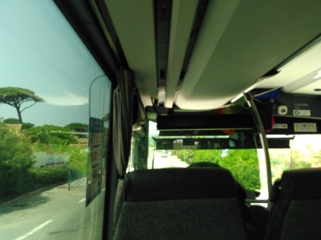 Wir schafften es schlussendlich nach Saint-Maxime. Nach zehn oder 15 Minuten fuhr auch ein Bus ein. Ich fragte ob er nach Saint-Raphaël fahren würde – das wurde bejaht. Ich fragte ob es möglich sei zwei Fahrräder mitzunehmen – darauf begann der Busfahrer sehr wild zu schimpfen. Wir hatten ja etwas Verhandlungsspielraum: ein Fahrrad würde reichen. Er war immer noch nicht begeistert, schimpfte wie ein Rohrspatz, und stieg wieder in seinen Bus, stieg dann aber doch wieder aus und öffnete das Gepäckfach. Also legten wir Arnes Fahrrad einfach mal in den Gepäckraum und schauten was passiert.