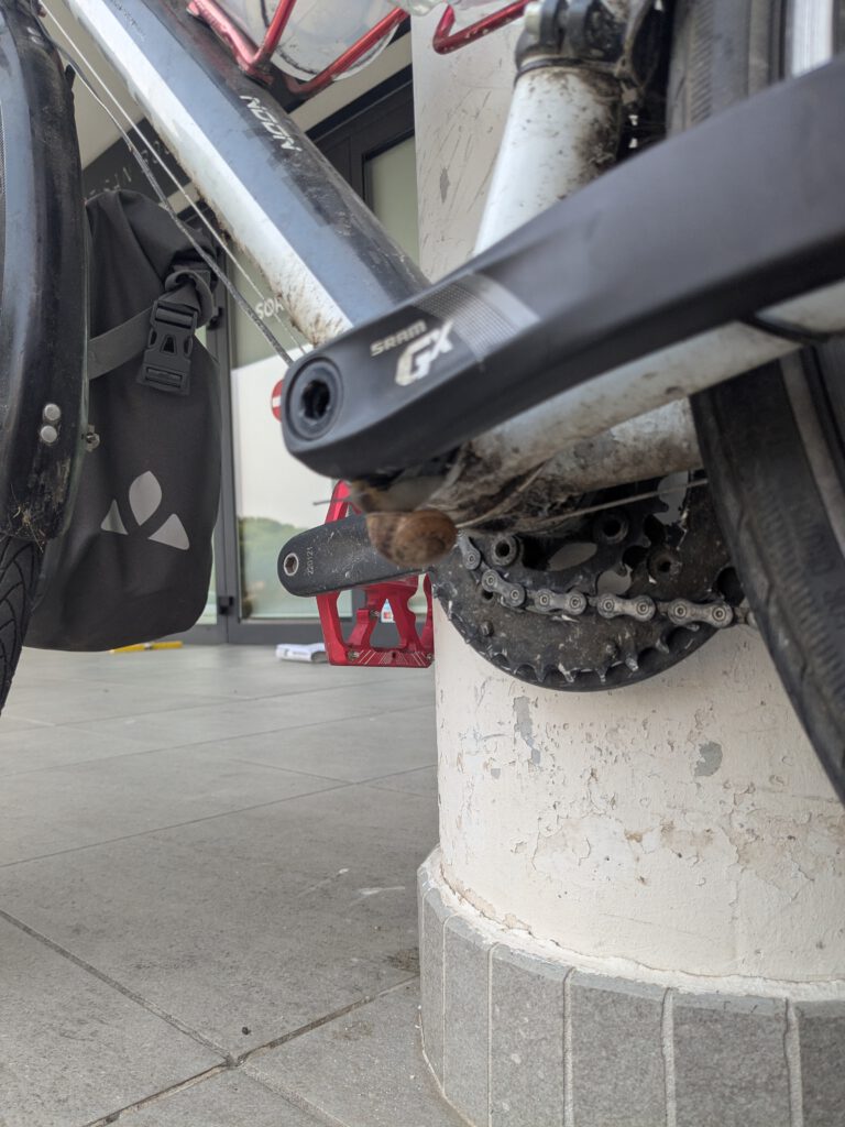 Sah erst einmal toll aus, aber die Werkstatt war primär auf kleine Pannen (Schläuche, Flicken, Bremsen) eingestellt. Dafür hätte ich auch genug Werkzeug dabei. Weiter zum nächsten Fahrradladen: der Verkäufer informierte uns direkt dass Lager schwierig sind, weil es so viele verschiedene gibt (Ja, ich weiß…). Sie haben die Kurbel dann selbst einmal abgeschraubt.